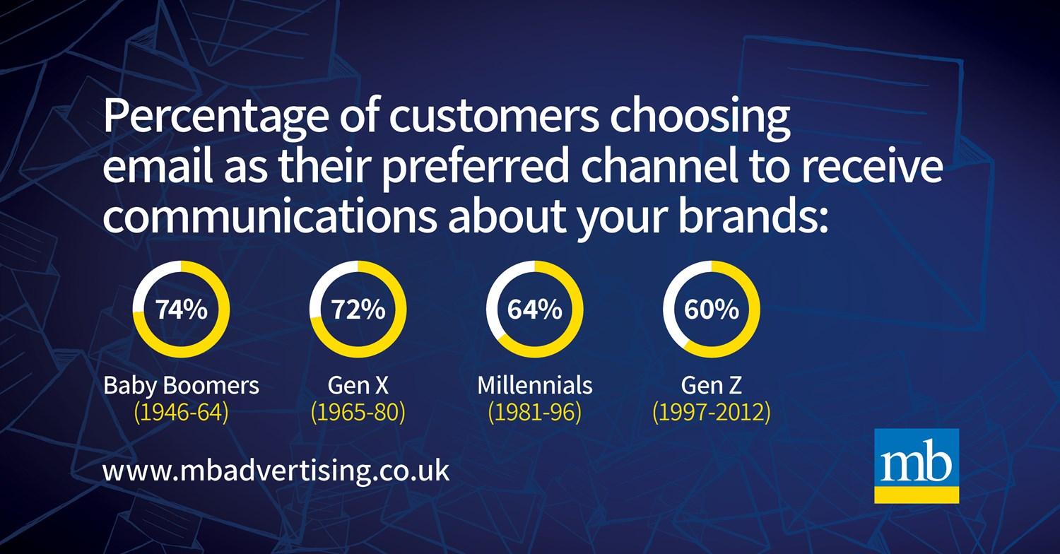 We know that 74% of Baby Boomers, 72% of Gen X, 64% of Millennials and 60% of Gen Z choose emails as their preferred channel of communication as well as understanding which day, time and subject lines generates optimum results. Having a personalised subject line can increase your email open rate by up to 26%.